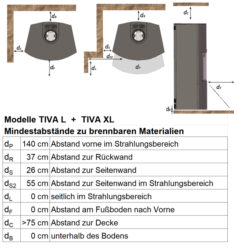 Auch bei der Modellvariante TIVA DA XL ist die massive Feuerungstür mit einem Edelstahlgriff, einer 3-Punkte-Verriegelung und selbstverriegelndem KLAPS-Türverschluss ausgestattet. Das besondere bei dieser optisch herausragenden Variante ist die erhöhte Feuerstelle.