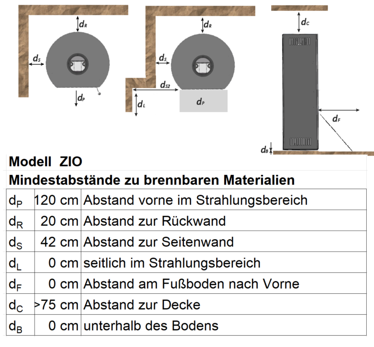 Mit einer Stellfläche von nur 35×40 cm und einer Leistung von 5 kw, ist das Modell ZIO für gut isolierte Wohnungen und kleinere Räume sehr gut geeignet.